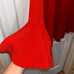 Free People Red Low Cut Dress with super cute Bell Sleeves.