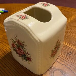 Vintage 1980’s Tissue Box Holder In Excellent Condition. Beautiful roses adorn the sides and top for a beautiful piece of cottage core / shabby chic decor.