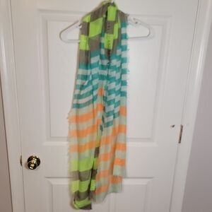 Lively colorful scarf from G.H. Bass & Co. Adds a pop of color. Very light weight and flowy. Some minor pulls on the end of one side but not noticeable when wearing.