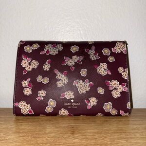 Kate Spade Tinsel Frosted Deep Berry Floral Flap Crossbody Clutch bag.