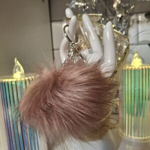 Faux Fur Pom Pom Bag Charm Keyring. Luxury Handmade Bag Jewelry Dusty Rose Pink
