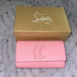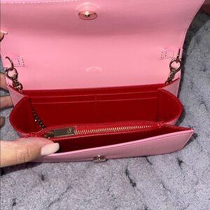 NWT Christian Louboutin pink leather shoulder bag with a stylish chain strap. Perfect for adding a pop of color to any outfit.