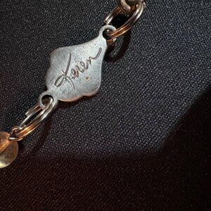Crafted with elegance, this jewelry set combines turquoise inlayed with triple-layered shimmering rhinestone crystals, offering a blend of natural charm and sparkling sophistication to elevate any ensemble. Chain adorned with glass beads to add to one-of-a-kind design. A real statement piece.