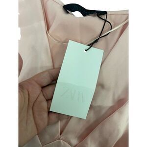 Zara Womens Pink Satin V-Neck Midi Dress Size M Short Sleeve 2330/399 NWT