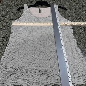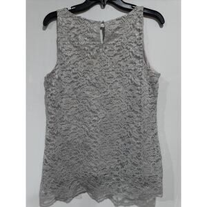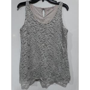 Ann Taylor LOFT Shirt Womens Medium Gray Silver Lace Tank Top Lined Sleeveless