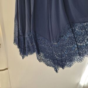 lace trimmed flowy skirt. blue. elastic waist. great for all seasons just by pairing with something seasonally appropriate. Preloved condition. All sections of interest as well any known flaws have been documented in the photos and noted as thoroughly as possible. if there are no known flaws, none will be noted. Please feel free to ask any questions before purchase 🙂.