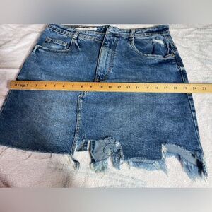 Zara Blue Denim Miniskirt Size L, used with some imperfections from use as seen in the photos, irregular hem and waist, very cute and modern