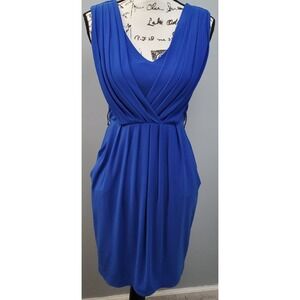Bisou Bisou Sheath Dress Womens Size 4 Blue Pleated Pocketed Sleeveless Back Zip.