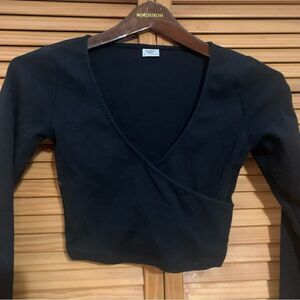Aritzia Sunday Best V neck Cropped Long sleeve Black size XS