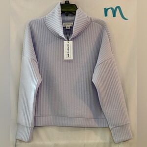 Chic cowl neck with ribbed texture. Soft and stylish.