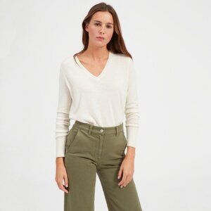 EVERLANE 100% Cashmere Ivory V-Neck Sweater, Size M Medium