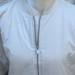 Athleta Women's Cream Sateen Bomber Zip Jacket Size XL NWOT