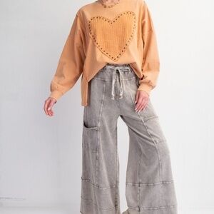 Description: HEART PATCH WASHED TERRY PULLOVER
