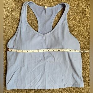 Stylish soft athleisure set. Includes a quarter zip-up hoodie, ribbed cropped tank top with built in shelf bra, and ribbed leggings. Ideal for relaxation or running errands.