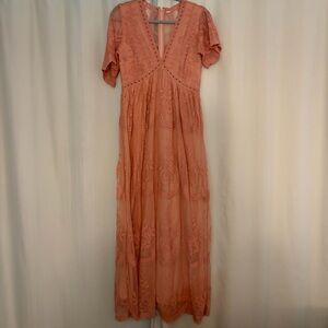 3 for $25! Elegant Peach Maxi Embroidered Boho Dress, size L