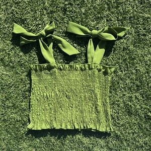 Chic and stylish green smocked top with bow-tie straps. Perfect for a casual day out or a summer event. No tag.