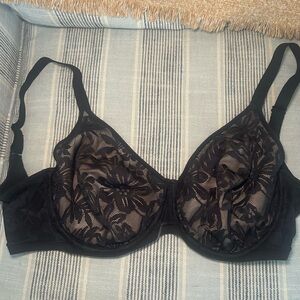 Bali Breathe Underwire Bra 40DD Black Lace Full Coverage