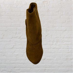 INDIGO -- Brown Ankle Bootie with Platform and Side Zip, Button Detail, NWOT