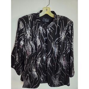 Alex Evenings Black w/Silver Sequins Evening Top/Cardigan Jacket Set size 1X