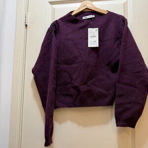 Selling a Zara knit top in a lovely purple/ burgundy colour. It's a size Large and features a unique gathered detail on right shoulder too. The original tag is still attached and shows it was originally bought for $59.90