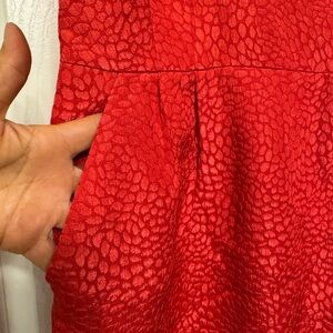 Chic scarlet dress with a unique texture. Ideal for stylish outings.