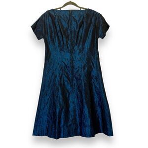 Vintage Handmade 60’s MCM Navy Blue Floral Taffeta Jacquard Cocktail Dress