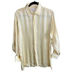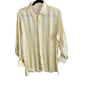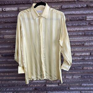 Carracci Vintage Yellow Tone on Tone Striped 100% Silk Disco Shirt Size M As IS