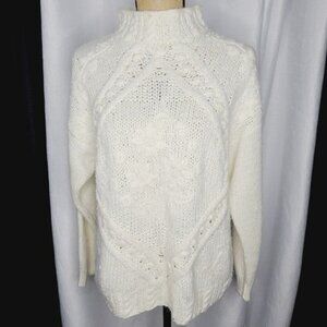 Vintage 80s Chunky Knit Mock Neck White Sweater