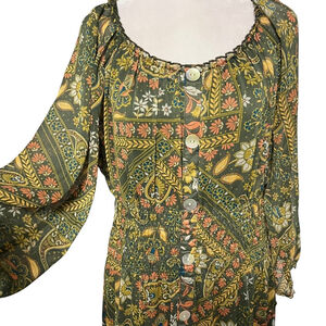 Figueroa & Flower Green Floral Tiered Maxi Dress Size Large