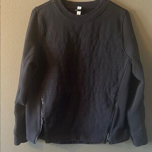 Stylish sweater with vibrant stripes. Features shades of pink, orange, yellow, and green on a navy base. Perfect for casual wear.