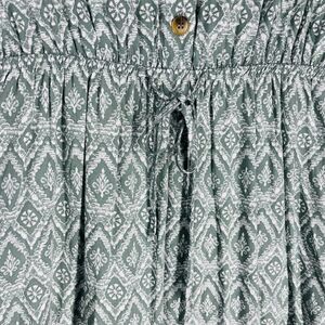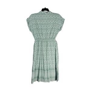 Lucky Brand Women's Midi Dress Large Green Print Button Front Short Sleeve Flowy