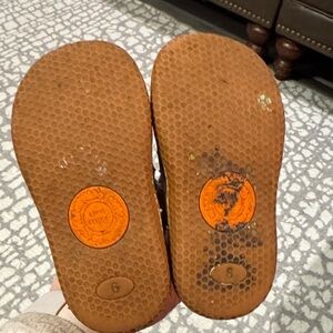 Champagne/golden color. These are our favorites. They go with so much! These are in great shape! The bottoms are dirty, but the tops show almost zero wear!