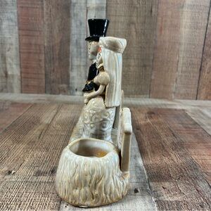 Such a cool and rare Halloween ceramic pedestal from Yankee Candle. Features a skeleton bride and groom standing between tombstones that say “Til Death” and “Do Us Part.” Super detailed and spooky-fun.