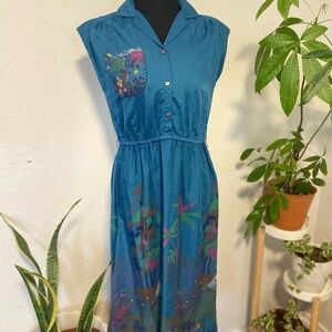 Vintage, 70s,art to wear, artsy, birds, tropical, hippie, quirky, grandma