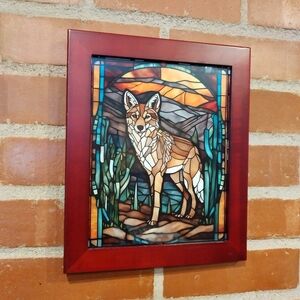 Coyote Stained Glass Style Framed Art Print By Neon Nicho