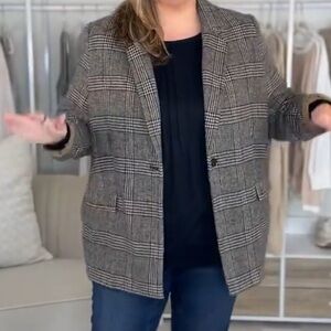 This power blazer elevates any look in an instant. Notched collar, long silhouette