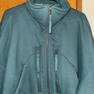 Cozy dark green fleece jacket by North Face. Women’s L full-zip front and zipper side pockets with fleece inner lining. Lightly worn and in great condition