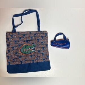 This vibrant blue kids' accessory set features a stylish tote and matching shorts with a fun gator print. Perfect for young fans, this set is both playful and practical. Blue Florida gators sweatpants Florida gators tote and megaphone purse set. The sweatpants are vs pink and have iconic UF logo graphic prints. The tote has a super cool monogram print with an embroidered gator head graphic over top the megaphone is the cutest little addition to a look and even has the head on the side! sweatpants Does have some signs of wear including a small hole by the uf logo. SIZE:xs DIMENSIONS APROX waist:14 can stretch to about 18 length:38 inseam:31 rise:8 OPEN TO OFFERS! Mannequin measurements aprox