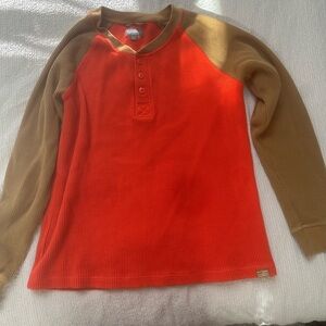L.L. Bean Orange and Wheat Henley Waffle Button Down Shirt