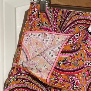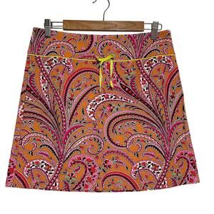 J. Crew Pink Paisley Mini Pencil Skirt Orange 70s groovy retro preppy statement