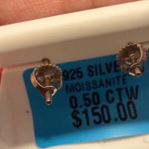 NWT 0.50 carat moissanite earrings. 925 sterling silver Screw back. These sparkling earrings are great for adding elegance to any outfit $150 retail