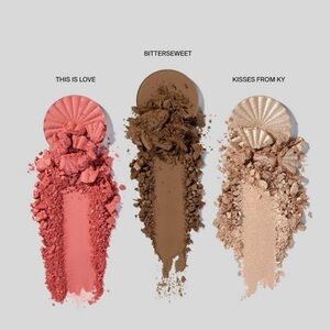 Palette of eyeshadow, blush, bronzer, and highlight