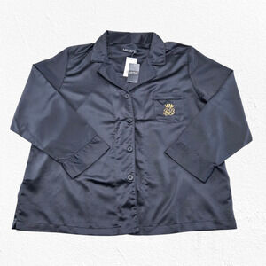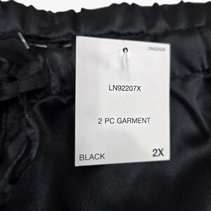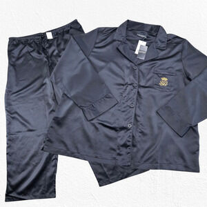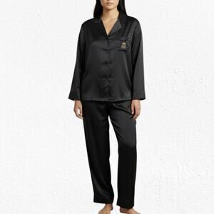 Lauren Ralph Lauren Black Embroidered Crest Satin Pajama PJ Set Size 2X NWT