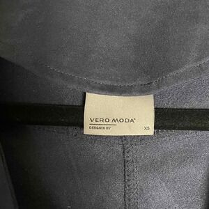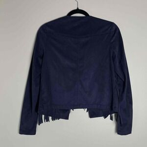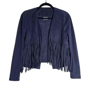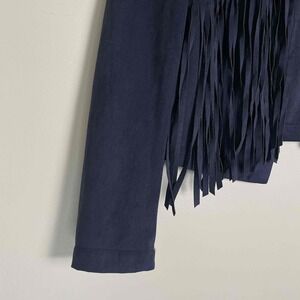 Vero Moda Women's Navy Open Faux Suede Southwestern Fringe Jacket Extra Small