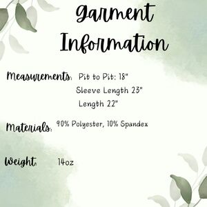 Measurement: Pit to Pit: 18" Sleeve Length 23" Length 22"