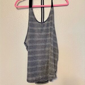Stylish heather gray tank with subtle stripes. Perfect for active or casual days. Soft and comfortable fabric.
