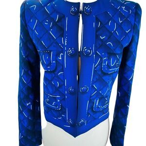 Moschino Print Double Breasted Blue Jacket Coat Blazer