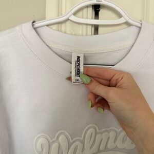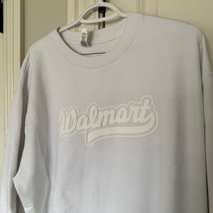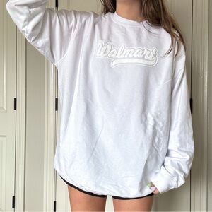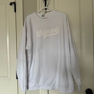 Walmart white graphic sweatshirt. Size 2xl, modeled on a women’s size small. Has Walmart logo on cuff as pictured. No flaws.