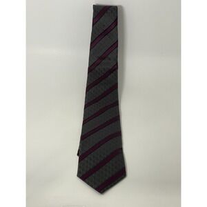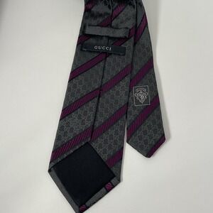 Gucci 100% Silk Tie Gray Purple GG Monogram Stripe Italy Crest Logo Designer