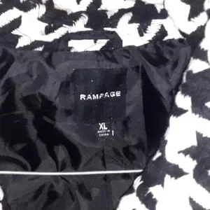 Chic black and white houndstooth coat with large buttons. Perfect for a fashionable look.